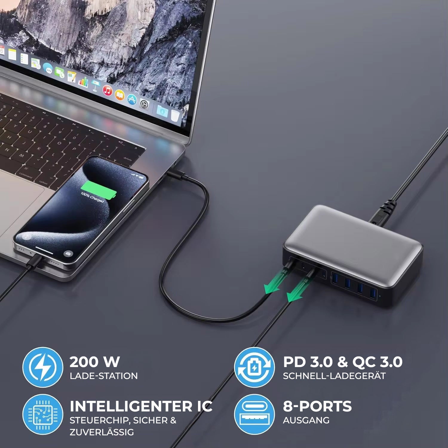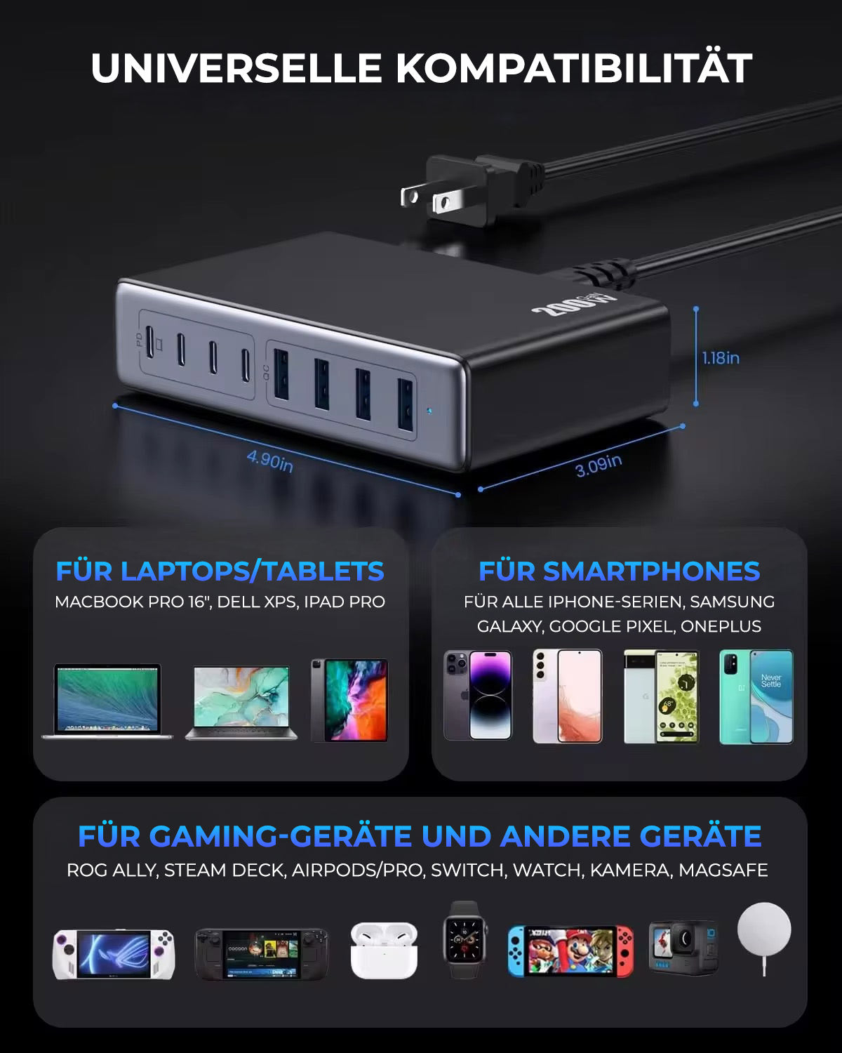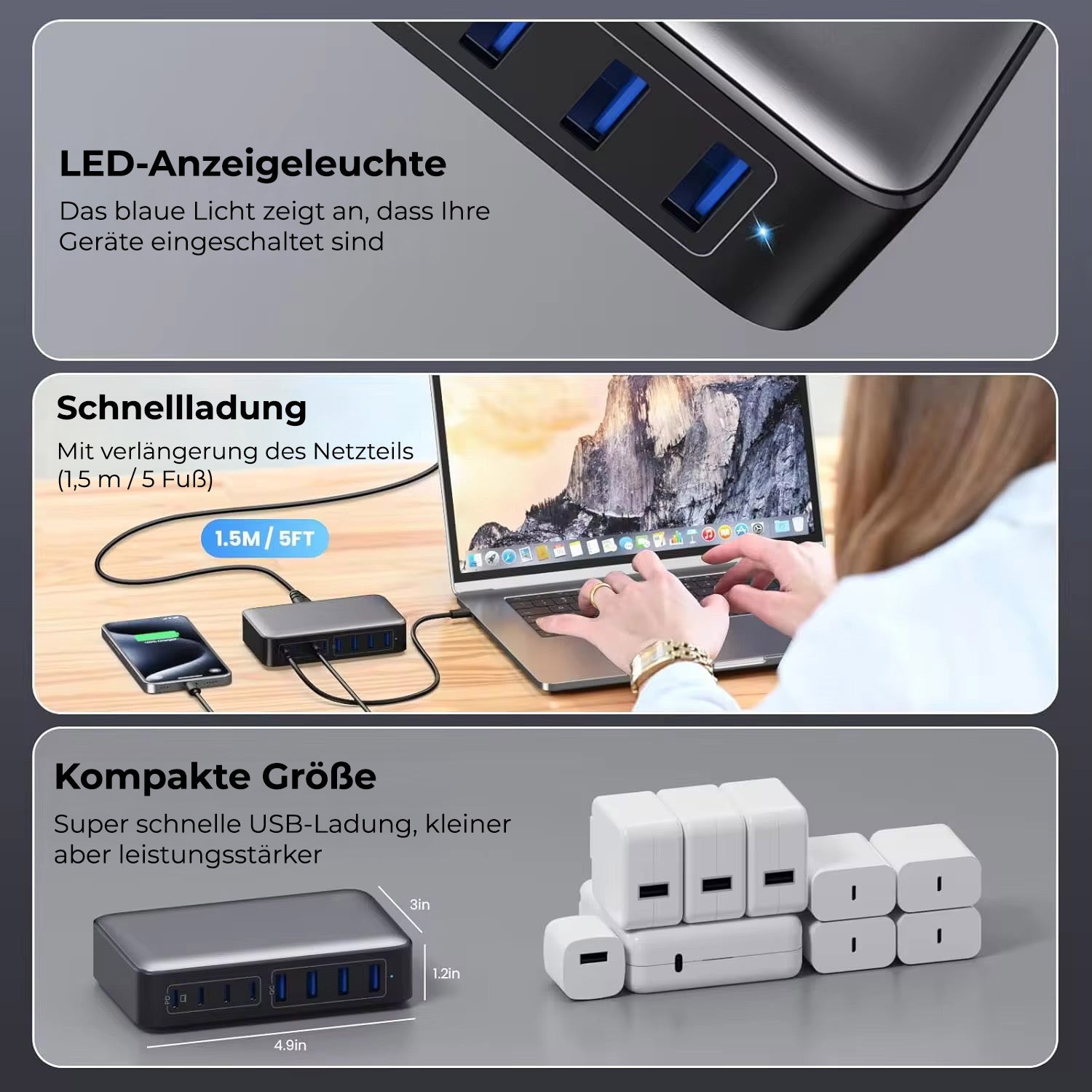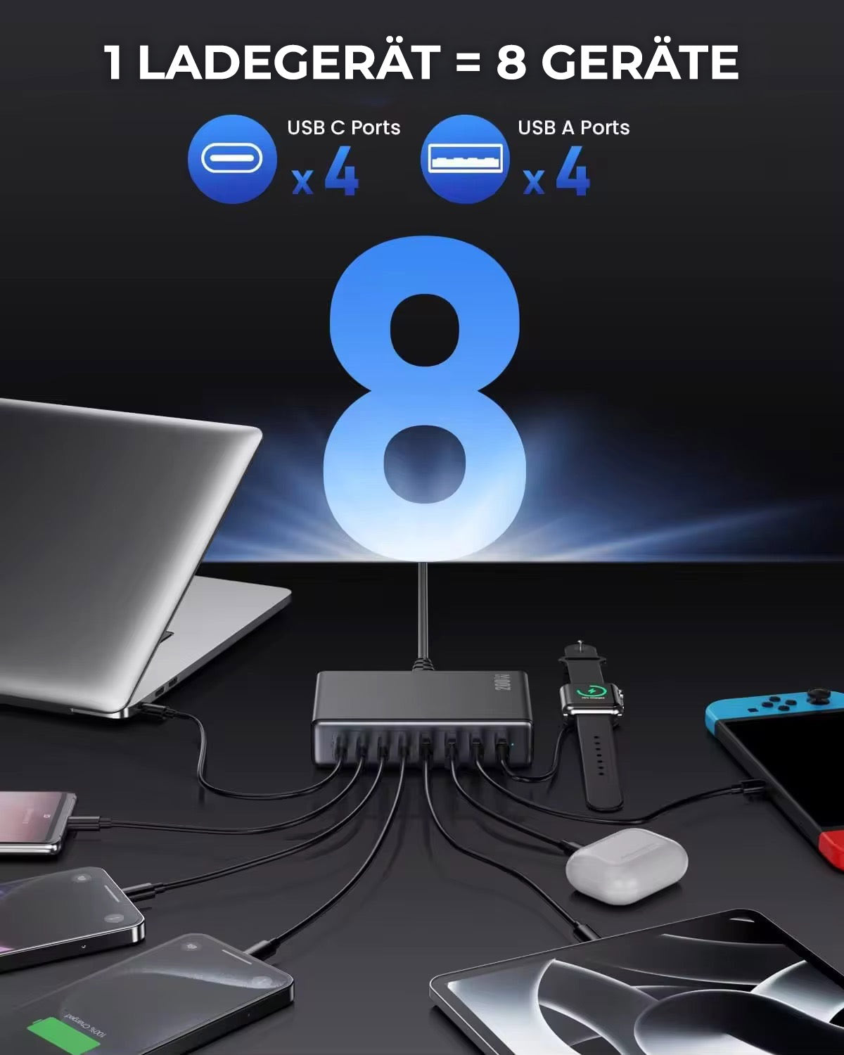 - Anzahl der Anschlüsse: 8 Ports (USB-A und USB-C)