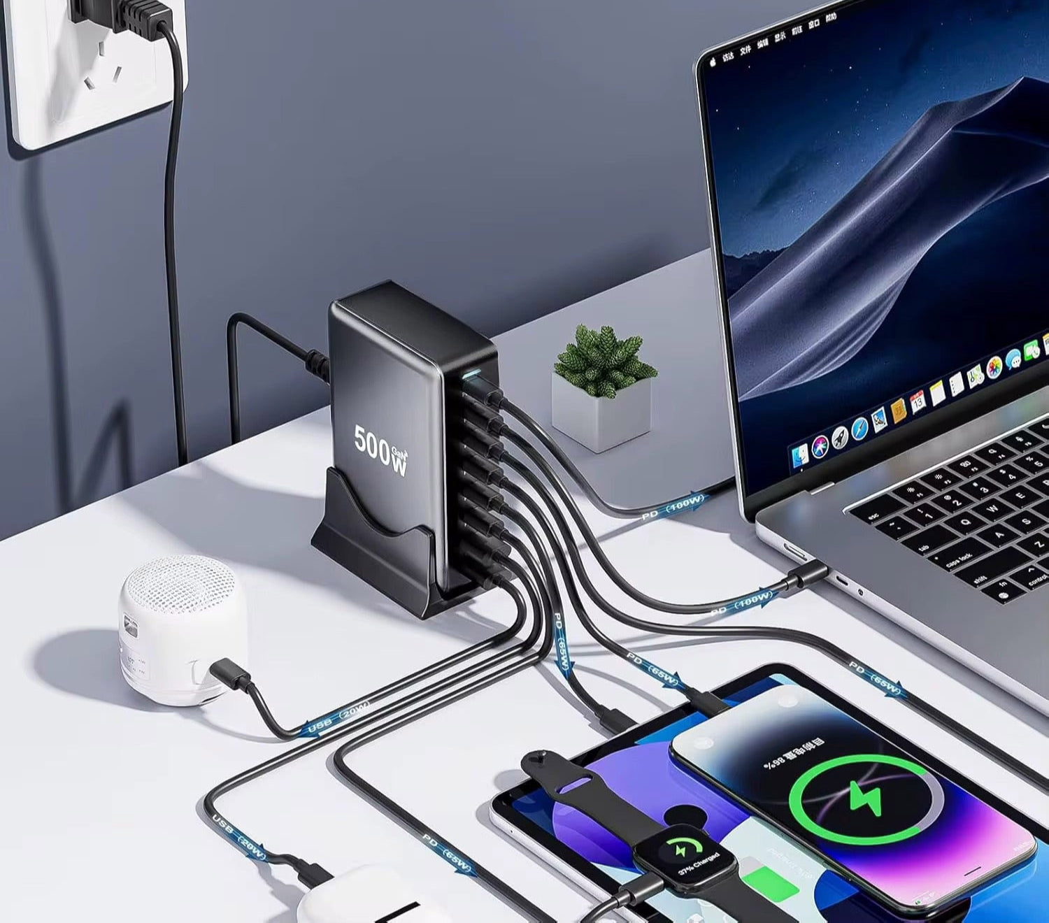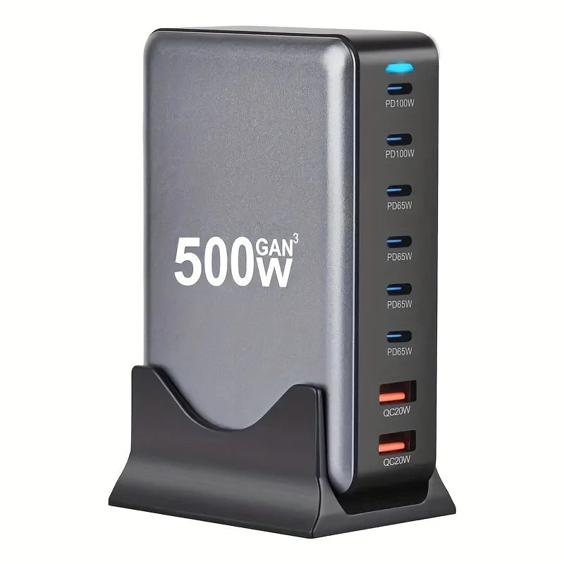 Maximiere deine Ladeeffizienz mit der 8-Port Schnelllade-Station. Diese leistungsstarke Lade-Station bietet 8 Anschlüsse für gleichzeitig schnelles Laden von Smartphones, Tablets, Laptops und anderen Geräten. Mit einer Leistung von bis zu 500W und der neuesten GaN-Technologie sorgt die Station für schnelles, sicheres Laden, während sie gleichzeitig eine kompakte und moderne Lösung für deine Ladebedürfnisse darstellt.
